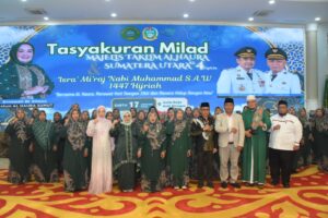 “Satu tetes air mata seorang ibu, itu sangat berharga dan mampu menggetarkan hati siapa pun. Kami tahu bagaimana perjuangan ibu-ibu Al Haura. Karena itu, kami ingin menegaskan, Pemerintah Kabupaten (Pemkab) Deli Serdang akan selalu bersama Al Haura,” tegas Wakil Bupati (Wabup) Deli Serdang, Lom Lom Suwondo SS, bersama Ketua I Bidang Pembinaan Karakter Keluarga TP PKK Deli Serdang, Ny Asniar Lom Lom Suwondo, pada Milad ke-IV Majelis Taklim dan Zikir Al Haura Sumatera Utara dan Peringatan Isra Mikraj Nabi Muhammad SAW di Aula Raja Inal Siregar, Kantor Gubernur Sumatera Utara, Jalan Diponegoro, No.30, Medan, Sabtu (17/1/2026).