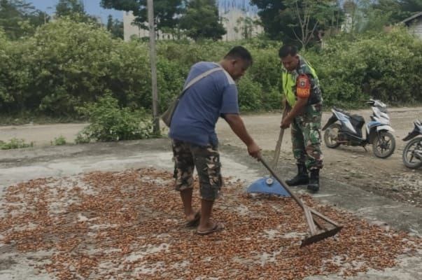 Kutacane Agaranews.com – Babinsa Koramil 0108-05/Lawe Alas Sertu Ahmadi jajaran Kodim 0108/Agara melaksanakan anjangsana bersama warga binaan menjemur coklat di desa Lawe Kongker kecamatan Lawe Alas Kabupaten Aceh Tenggara, Sabtu (17/01/2026).