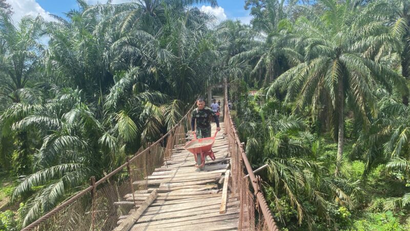 Padang Lawas Utara, AgaraNews .com // Satgas Kodim 0212/Tapanuli Selatan (TS) melaksanakan pembangunan jembatan gantung di Desa Rondaman, Kecamatan Halongonan, Kabupaten Padang Lawas Utara (Paluta), Jumat (16/1/2026). Pembangunan ini dilakukan untuk memulihkan akses penghubung antarwilayah yang sebelumnya terputus akibat kerusakan jembatan lama.Jembatan gantung tersebut memiliki panjang sekitar 80 meter dengan lebar 2 meter. Infrastruktur ini menjadi jalur vital yang menghubungkan Desa Rondaman dengan sejumlah wilayah, yakni Desa Batanggogar, Kecamatan Sungai Kanan, Kabupaten Labuhanbatu Selatan, Dusun Kampung Tempel Desa Siancimun, Desa Hutabaru Nangka, serta Desa Sihopuk di Kecamatan Halongonan, Kabupaten Paluta.Sebelumnya, jembatan gantung di lokasi tersebut mengalami kerusakan berat akibat faktor usia dan termakan waktu. Kondisi tersebut membahayakan keselamatan warga dan menghambat mobilitas masyarakat, baik untuk aktivitas ekonomi, pendidikan, maupun sosial, sehingga diperlukan pembangunan kembali secara bertahap.
