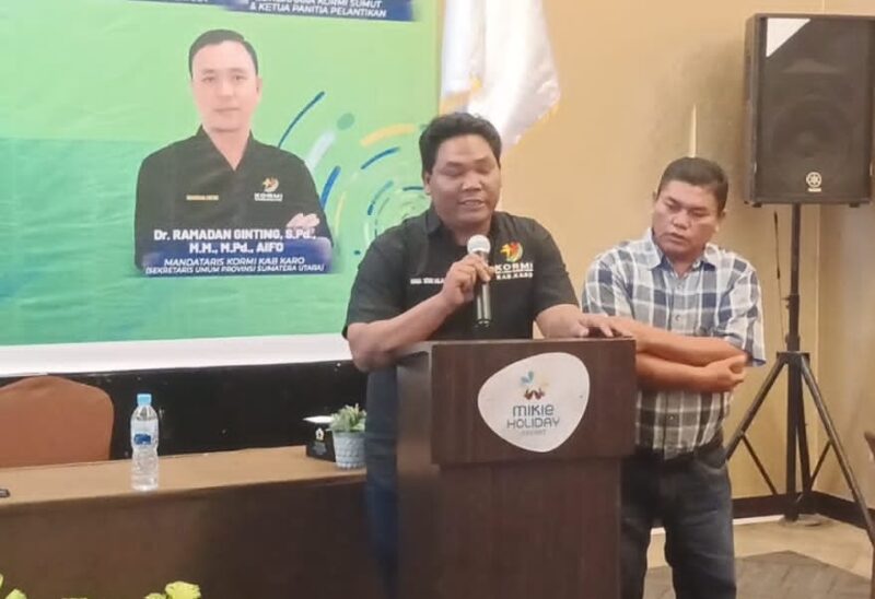 Tanah Karo, AgaraNews.com // Komite Olahraga Masyarakat (KORMI) Kabupaten Karo resmi dipimpin oleh Maha Sendi Milala sebagai Ketua KORMI Kabupaten Karo Periode 2026-2030. Pengangkatan ini dilakukan melalui Musyawarah Kabupaten (Muskab) KORMI Kabupaten Karo yang diadakan di Aula Hotel Mikie Holiday Berastagi, Kabupaten Karo, pada Sabtu (18/01/2026).