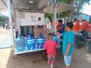 Mobil RO berfungsi mengolah air menjadi air bersih siap minum, sehingga dapat langsung dimanfaatkan oleh warga untuk kebutuhan sehari-hari seperti minum, memasak, dan keperluan rumah tangga lainnya.