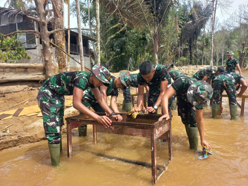 Tapanuli Tengah, AgaraNews. Com // Satgas Penanggulangan Bencana Alam (Gulbencal) Kodam I/Bukit Barisan melaksanakan pembersihan Sekolah Dasar Negeri (SDN) 152983 Hutanabolon I, Kelurahan Hutanabolon I, Kecamatan Tukka, Kabupaten Tapanuli Tengah, Senin (19/1/2026), pascabencana banjir dan tanah longsor.