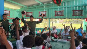 Tidak hanya berbagi makanan, personel Satgas turut mengadakan kuis singkat tentang kewarganegaraan untuk menanamkan jiwa nasionalisme. Materi kuis meliputi pengetahuan dasar seperti Pancasila, simbol negara, dan nilai persatuan. Suasana semakin meriah saat anak-anak antusias menjawab pertanyaan, disambut tepuk tangan dan semangat dari para prajurit.