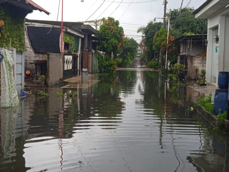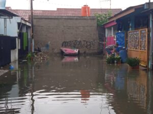 Bekasi, AgaraNews.com // Perumahan Bekasi Green City di Kampung Turi, Sriamur, Tambun Utara, Kabupaten Bekasi, kembali dilanda banjir setelah hujan deras yang tidak kunjung reda sejak subuh. Warga setempat, Ipay, mengatakan bahwa banjir mencapai sepaha hingga sebetis dewasa dan mengganggu aktivitas sehari-hari.