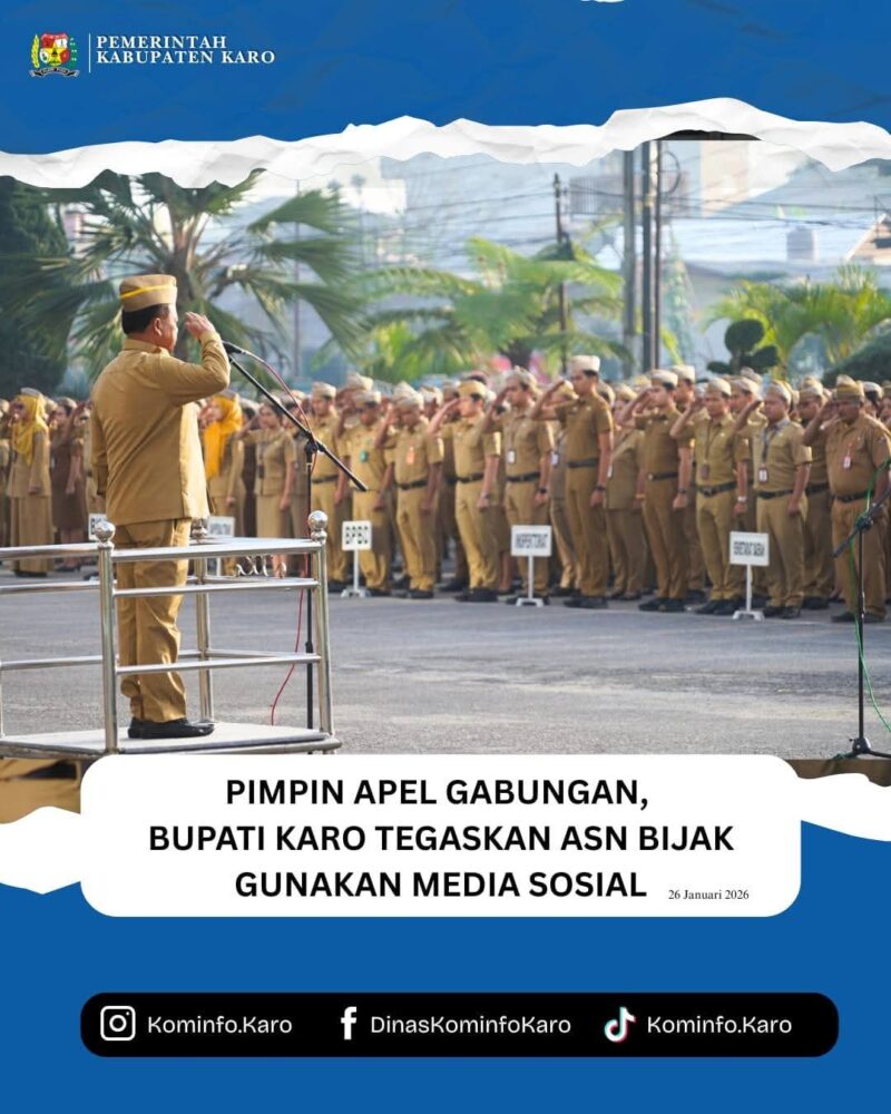 Tanah Karo, AgaraNews.com // Bupati Karo, Brigjen Pol (Purn) Dr. dr. Antonius Ginting, Sp.OG., M.Kes, memimpin apel gabungan Aparatur Sipil Negara (ASN) di lingkungan Pemerintah Kabupaten Karo yang berlangsung di halaman Kantor Bupati Karo, Kabanjahe, Senin (26/01/2026)