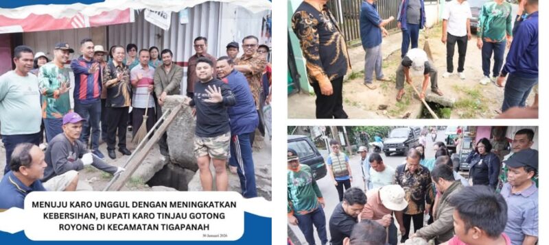 Tigapanah, AgaraNews. Com // Bupati Karo, Brigjen Pol (Purn) Dr. dr. Antonius Ginting, Sp.OG., M.Kes., didampingi Sekda Kab.Karo, Gelora Kurnia Putra Ginting, S.STP., MM., Para Asisten Setda Kab.Karo, Ka.OPD terkait, Camat Kec. Tigapanah, Forkopimca Kec.Tigapanah, Ketua dan Ketua 1 TP PKK Kab.Karo , Para Kepala Desa Kec.Tigapanah, menyambangi warga dan tinjau gotong royong dalam rangka Bulan Bhakti Gotong Royong di Kecamatan Tigapanah, yang dilaksanakan di Jambur Merga Silima Tigapanah, pada Jumat (30/01/2026).