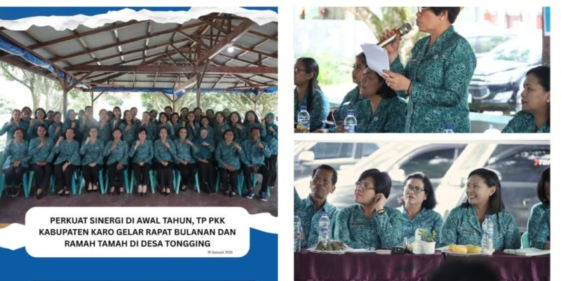 Merek, AgaraNews .com // Mengawali program kerja tahun 2026 dengan semangat kebersamaan, Tim Penggerak Pemberdayaan Kesejahteraan Keluarga (TP PKK) Kabupaten Karo menggelar rapat koordinasi bulanan sekaligus acara ramah tamah tahun baru. Kegiatan ini dipusatkan di Desa Tongging, Kecamatan Merek, pada Jumat (30/01/2026).
