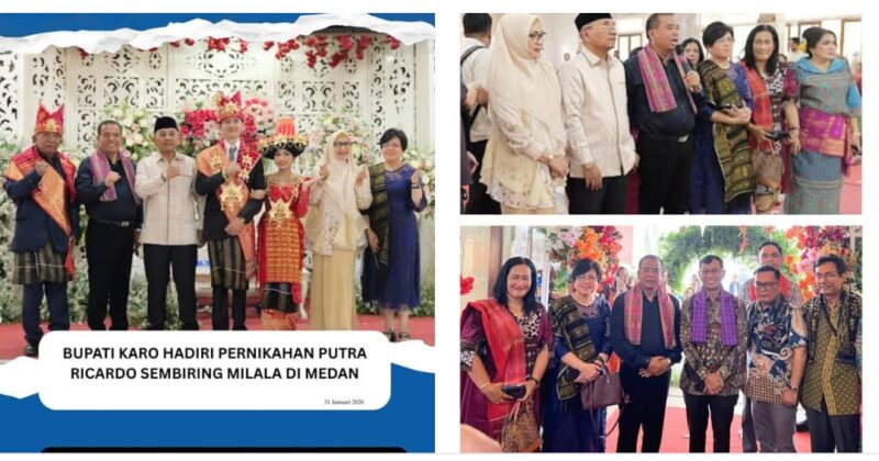Medan, AgaraNews .com // Bupati Karo, Brigjen Pol (Purn) Dr. dr. Antonius Ginting, Sp.OG., M.Kes., menghadiri acara pernikahan Imanuel Rajabana Sembiring Milala dengan Astri Maya Sandi br. Ginting Jawak, S.Ak. di Wisma Sibayak, Medan, Sabtu (31/01/2026).
