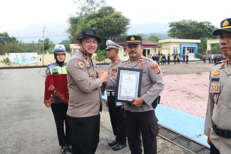 GAYO LUES — Kepolisian Sektor Blangkejeren kembali menegaskan perannya sebagai garda terdepan dalam menjaga keselamatan dan ketertiban masyarakat di wilayah Gayo Lues. Dedikasi dan kerja keras dalam menangani berbagai bencana alam yang melanda kawasan tersebut membuahkan apresiasi dari pimpinan. Kapolsek Blangkejeren beserta jajarannya menerima piagam penghargaan secara resmi dari Kepala Kepolisian Resor Gayo Lues pada tanggal 16 Februari 2026. Piagam tersebut diserahkan langsung oleh seorang perwira tinggi dari Mabes Polri yang mewakili Inspektorat Pengawasan Umum (Irwasum) sebagai Wakil Kepala Operasi Wilayah Hukum Polres Gayo Lues.