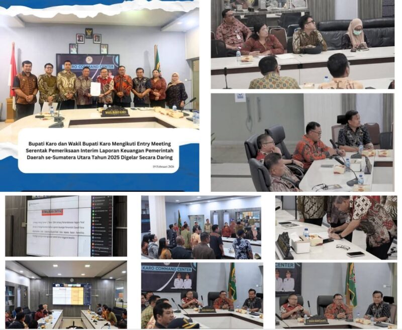 Tanah Karo, AgaraNews.com // Bupati Karo, Brigjen Pol (Purn) Dr. dr. Antonius Ginting, Sp.OG., M.Kes., dan Wakil Bupati Karo, Komando Tarigan, S.P., mengikuti kegiatan entry meeting serentak pemeriksaan interim laporan keuangan pemerintah daerah se-Provinsi Sumatera Utara Tahun 2025 yang dilaksanakan oleh Badan Pemeriksa Keuangan (BPK) secara daring melalui Zoom Meeting.