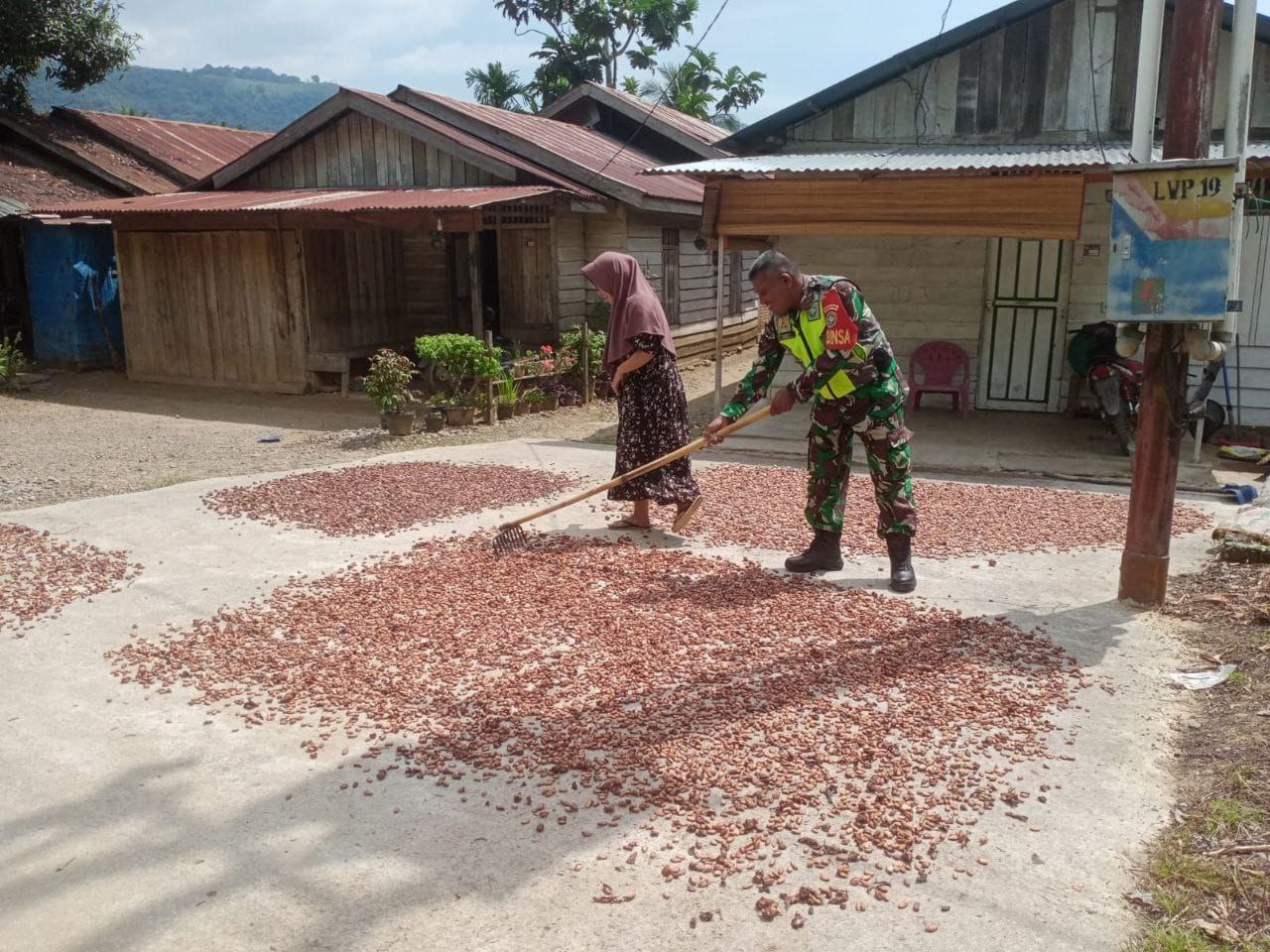 Babinsa Posramil Leuser Bantu Petani Penjemuran Biji kakao