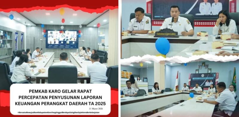 Tanah Karo, AgaraNews.com // Pemerintah Kabupaten Karo melalui Sekretaris Daerah Kabupaten Karo, Gelora Kurnia Putra Ginting, S.STP., MM, memimpin rapat percepatan penyusunan Laporan Keuangan Perangkat Daerah Tahun Anggaran 2025 yang dilaksanakan secara daring melalui Zoom Meeting di KCC Kantor Bupati Karo, Rabu (11/3/2026).