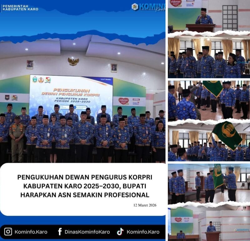 Tanah Karo, AgaraNews.com // Bupati Karo, Brigjen Pol (Purn) Dr. dr. Antonius Ginting, Sp.OG., M.Kes., yang diwakili Wakil Bupati Karo, Komando Tarigan, S.P., menghadiri kegiatan Pengukuhan Dewan Pengurus Korps Pegawai Republik Indonesia (KORPRI) Kabupaten Karo Masa Bakti 2025–2030. Kegiatan ini menjadi momentum penting bagi aktifnya kembali organisasi KORPRI di Kabupaten Karo setelah cukup lama vakum sejak tahun 2011.