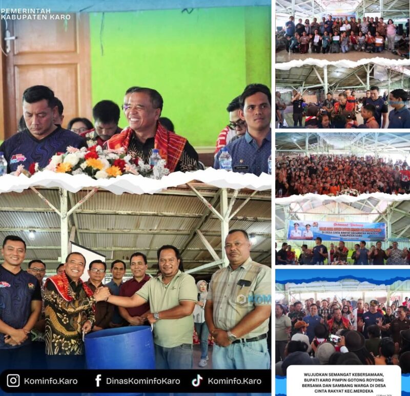 Tanah Karo, AgaraNews.com // Bupati Karo, Brigjen Pol (Purn) Dr. dr. Antonius Ginting, Sp.OG., M.Kes, menghadiri puncak pelaksanaan Gotong Royong Masyarakat dan “Sambang Warga” di Desa Cinta Rakyat, Kecamatan Merdeka, pada Jumat (13/03/2026).