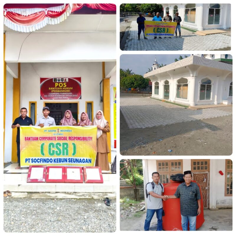 Nagan Raya : PT Socfindo kebun Seunagan Kecamatan Kuala Persisir Kabupaten Nagan Raya Provinsi Aceh salurkan bantuan sosial untuk tiga Desa yang bersumber dari dana Coorporate Social Responsibility (CSR) bidang keagamaan. Jum’at 13 Maret 2026.