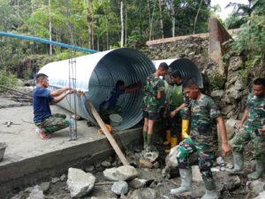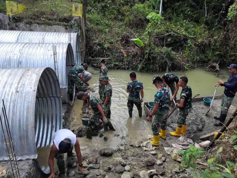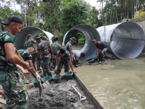 Nias Utara, AgaraNews .com // Kodim 0213/Nias bersama prajurit Yon TP 903/Baluseda merampungkan pembangunan Jembatan Aramco di Sungai Bohoya, Desa Tetehosi Maziaya, Kecamatan Sitolu Ori, Senin (16/3/2026). Jembatan sepanjang 10,5 meter tersebut kini telah selesai dibangun dan dapat dimanfaatkan masyarakat untuk mendukung kelancaran aktivitas sehari-hari.