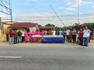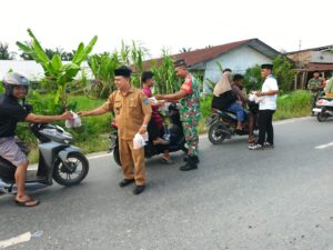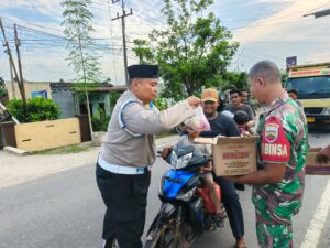 Labuhanbatu, AgaraNews.com // Kodim 0209/Labuhanbatu terus memperkuat kemanunggalan TNI dengan rakyat melalui kegiatan sosial di bulan suci Ramadhan. Melalui Koramil 09/NL, kegiatan berbagi takjil dilaksanakan bersama Forkopimcam Bilah Hilir dan PT Socfindo di Jalan Lintas Negeri Lama, Kecamatan Bilah Hilir, Senin (16/03/2026).Kegiatan tersebut dipimpin oleh Babinsa Koramil 09/NL Peltu M. Hakim bersama lima orang anggota, dengan menyasar masyarakat pengguna jalan yang melintas menjelang waktu berbuka puasa. Kehadiran TNI bersama pemerintah kecamatan, Polri, dan pihak perusahaan menjadi bukti nyata sinergi dalam membantu masyarakat.Turut hadir dalam kegiatan tersebut Camat Bilah Hilir Ardian, S.STP, Kapolsek Bilah Hilir AKP Armen Faisal beserta anggota, Manager PT Socfindo Bobi Hercules beserta staf, Lurah Negeri Lama Sarifutdin Nst., Ketua Bhayangkari beserta anggota, serta awak media. Sebanyak 700 paket takjil dibagikan kepada masyarakat, terdiri dari berbagai jenis makanan dan minuman berbuka puasa.Camat Bilah Hilir menyampaikan apresiasi atas kepedulian yang ditunjukkan oleh Koramil 09/NL bersama Forkopimcam dan PT Socfindo. Menurutnya, kegiatan ini tidak hanya membantu masyarakat, tetapi juga mempererat kebersamaan serta memperkuat sinergitas antar instansi di wilayah.Sementara itu, Dandim 0209/Labuhanbatu Letkol Kav Hanung Kaptiaji, S.Sos., M.I.P., menegaskan bahwa kegiatan berbagi takjil merupakan wujud nyata kepedulian TNI kepada masyarakat sekaligus mempererat kemanunggalan TNI dengan rakyat. “Melalui kegiatan ini kita ingin menumbuhkan semangat kebersamaan dan saling berbagi, sehingga kehadiran TNI benar-benar dirasakan manfaatnya oleh masyarakat,” tegas Dandim.(Lia Hambali)
