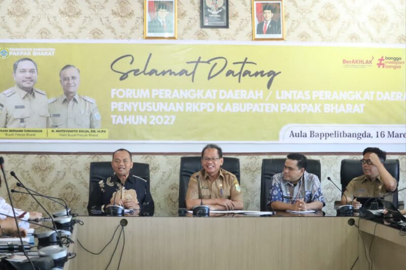 Sindeka, Agara News.com // Sekretaris Daerah Pakpak Bharat Jalan Berutu, S.Pd., MM atas nama Bupati Pakpak Bharat Franc Bernhard Tumanggor membuka Forum Perangkat Daerah ( Forperda ) / Lintas Perangkat Daerah Penyusunan RKPAD Pakpak Bharat Tahun 2027 di Aula Bappelitbangda Pakpak Bharat. Forum Perangkat Daerah/lintas Perangkat Daerah dilaksanakan bertujuan untuk memperoleh masukan dalam rangka penajaman target kinerja sasaran, program dan kegiatan, lokasi dan kelompok sasaran dalam Penyusunan Rancangan Renja Perangkat Daerah Tahun 2027 yang akan datang.