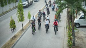 Perkenalan diawali dengan gowes bersama pimpinan perangkat daerah dari Rumah Dinas Bupati di Lubuk Pakam menuju Jalan Limau Manis, Simpang Kayu Besar, Tanjung Morawa dilanjutkan sarapan pagi dan senam bersama masyarakat setempat, Sabtu (28/3/2026).