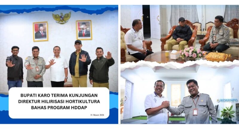 Tanah Karo, AgaraNews.com // Bupati Karo, Brigjen Pol (Purn) Dr. dr. Antonius Ginting, Sp.OG., M.Kes., menerima kunjungan Direktur Hilirisasi Hasil Hortikultura Direktorat Jenderal Hortikultura Kementerian Pertanian RI, Freddy, S.T.P., M.Sc., M.P.S., Ph.D., dalam rangka membahas pelaksanaan kegiatan Horticulture Development in Dryland Areas Sector Project (HDDAP) atau Pengembangan Hortikultura di Lahan Kering di Kabupaten Karo, Selasa (31/3/2026).