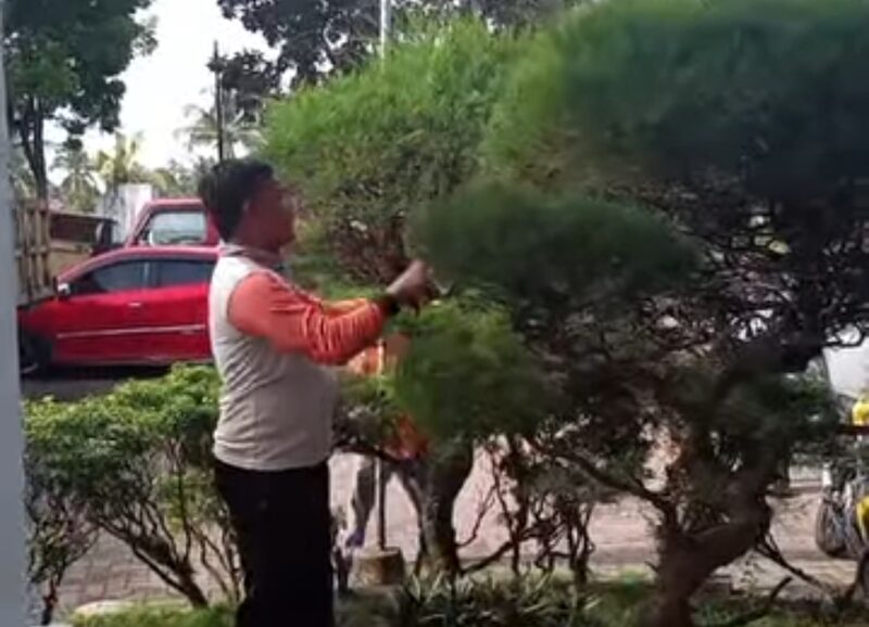 Area halaman kantor yang sebelumnya dipenuhi dedaunan kering mulai dibersihkan. Taman-taman yang tampak kurang terawat kembali dirapikan, rumput liar dipangkas, dan saluran drainase diperiksa untuk memastikan tidak ada sumbatan yang dapat memicu genangan air. Bahkan, beberapa sudut kantor yang jarang tersentuh turut dibersihkan secara menyeluruh.