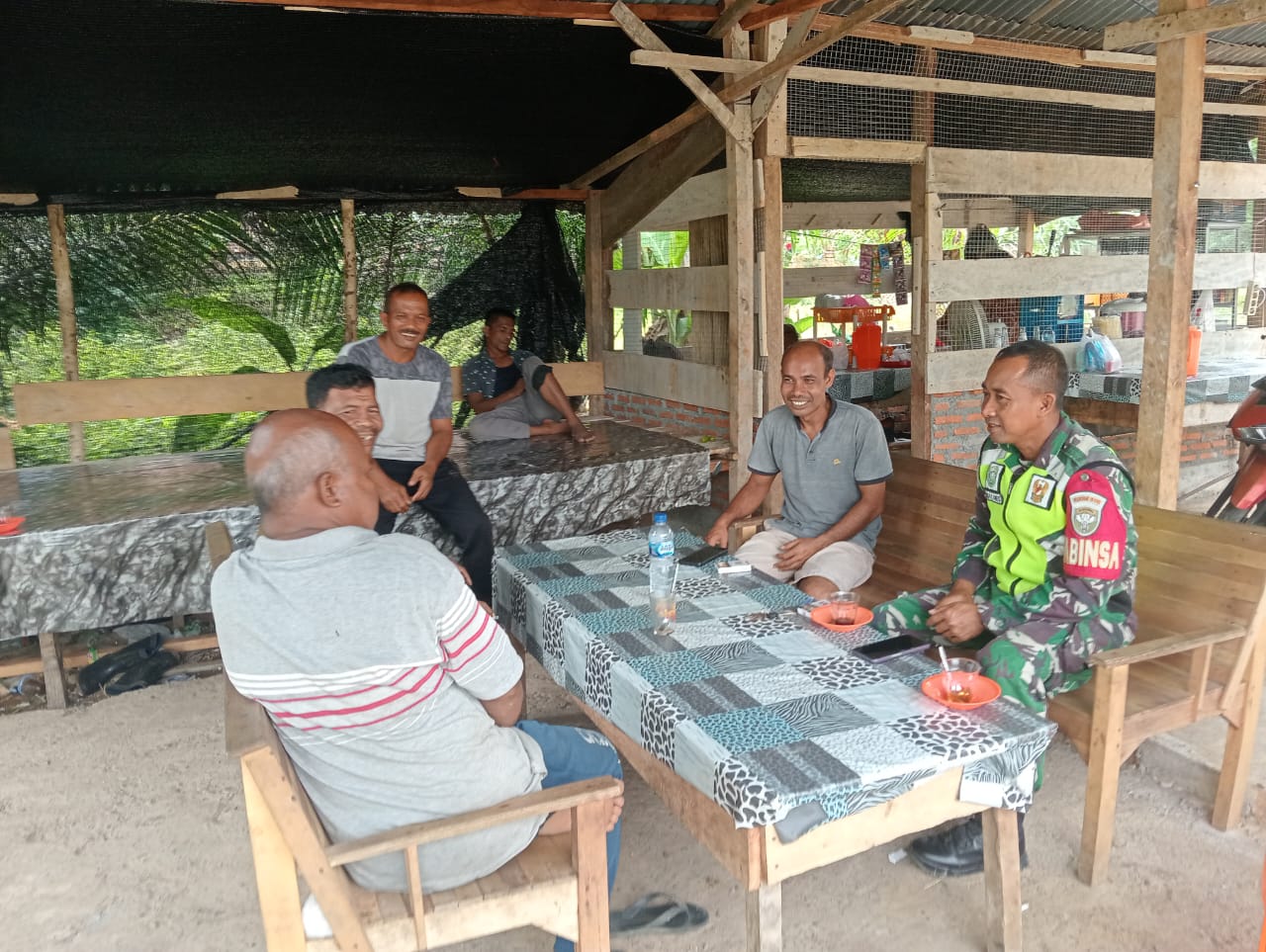 Untuk meningkatkan Silaturahmi yang baik di wilayah binaan, Babinsa melaksanakan Komsos bersama masyarakat desa, komsos tersebut dilaksanakan untuk menjalin silaturahmi dan sebagai pembinaan teritorial terhadap perangkat dan masyarakat di wilayah desa binaan.