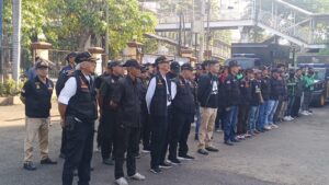 Usai pelaksanaan apel, kegiatan dilanjutkan dengan simulasi penanganan aksi unjuk rasa yang berpotensi menimbulkan kericuhan. Simulasi ini menggambarkan koordinasi antara aparat kepolisian dengan unsur masyarakat dalam mengendalikan situasi secara humanis dan terukur.