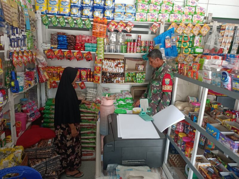 Babinsa mengecek Harga Sembako dikios-kios Warga yang ada di desa