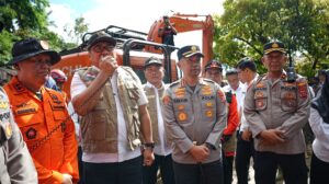 Kunjungan berlanjut ke lokasi longsor. Bersama unsur Forkopimda, Bupati memastikan percepatan penanganan darurat serta dukungan penuh bagi masyarakat terdampak.