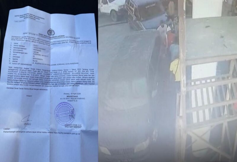 Berdasarkan Surat Tanda Penerimaan Laporan (STTLP) Nomor STTLP/B/171/IV/2026/SPKT/POLRES PINRANG/POLDA SULAWESI SELATAN, kejadian bermula pada Selasa, 2 April 2026 sekitar pukul 10.00 WITA di lokasi SPBU Bungi, Kecamatan Duampanua, Kabupaten Pinrang.