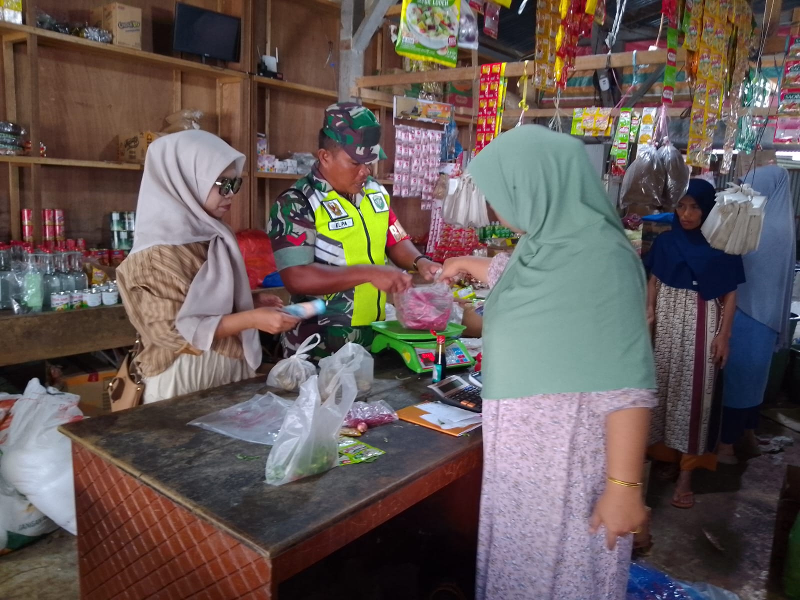 laksanakan tinjau harga bahan pokok di Pasar tradisional Ulle jalan oleh Babinsa Koramil 04 Beutong di wilayah Binaan nya