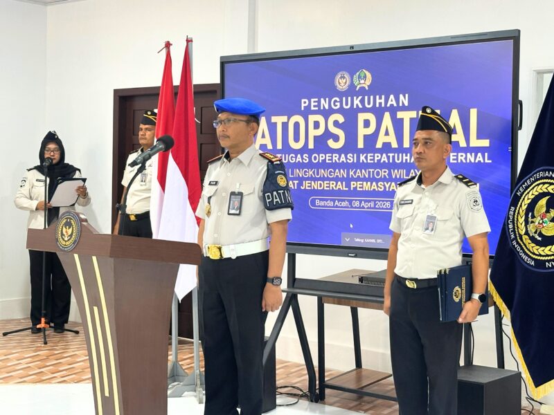 BANDA ACEH.AgaraNews.com//Kantor Wilayah (Kanwil) Ditjenpas Aceh secara resmi mengukuhkan Satuan Tugas Operasi Kepatuhan Internal (Satops Patnal), Rabu (8/4/2026). Langkah strategis ini diambil sebagai upaya memperkuat pengawasan sekaligus memastikan kedisiplinan petugas di seluruh Unit Pelaksana Teknis (UPT) Pemasyarakatan di wilayah Aceh.