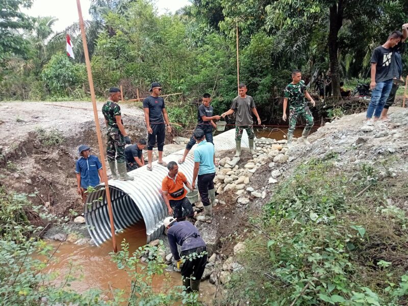 TnI terus bersinergi bersama dengan masyarakat, aktif mengerjakan pengecoran dan pemasangan batu pada jembatan yang sebelumnya jembatan yang sudah jatih menutupi saluran air yang mengakibatkan timbulnta Banjir dan di buat menjadi struktur baja yang lebih kokoh.