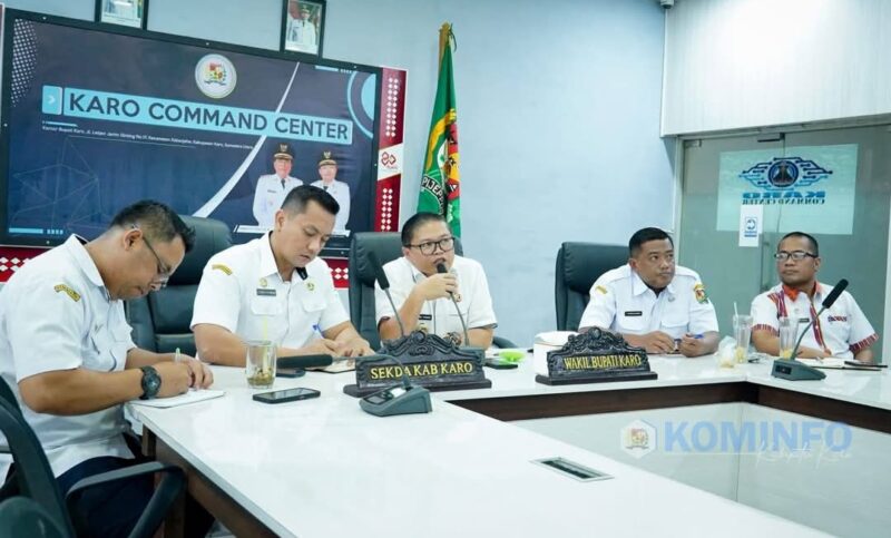 Tanah Karo, AgaraNews.com // Bupati Karo, Brigjen Pol (Purn) Dr. dr. Antonius Ginting, Sp.OG., M.Kes, yang pada kesempatan ini diwakili oleh Wakil Bupati Karo, Komando Tarigan, SP, didampingi Sekretaris Daerah Kabupaten Karo, Gelora Kurnia Putra Ginting, S.STP., M.M., mengikuti kegiatan REBOAN (Rembuk dan Bincang Otonomi Daerah Antar Kepala Daerah dan Kementerian Dalam Negeri) yang diselenggarakan oleh Direktorat Jenderal Otonomi Daerah Kementerian Dalam Negeri secara daring dari Karo Command Center, Kantor Bupati Karo, Rabu (8/4/2026).