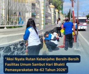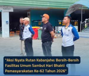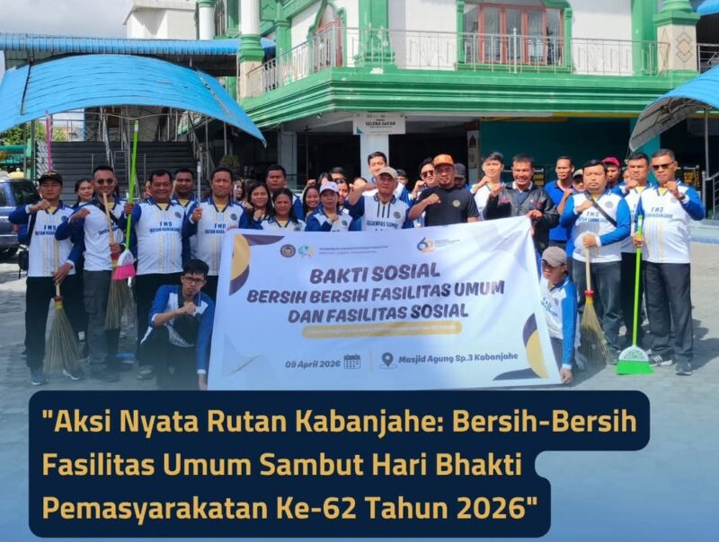 Tanah Karo – (09/04/2026), AgaraNews .com // Dalam rangka menyambut Hari Bhakti Pemasyarakatan (HBP) Ke-62 Tahun 2026, Rumah Tahanan Negara (Rutan) Kelas IIB Kabanjahe menggelar kegiatan bakti sosial berupa aksi bersih-bersih fasilitas umum dan fasilitas sosial di lingkungan sekitar, sebagai wujud kepedulian terhadap kebersihan dan kenyamanan lingkungan.