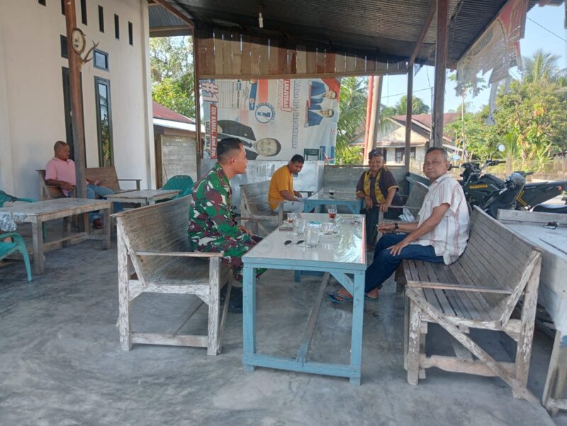Babinsa Koramil 03/ST kodim 0116/ Nagan raya, Serda Indra melaksanakan Komsos dengan masyarakat di desa Sawang Mane kecamatan Senagan Timur, kabupaten Nagan raya, Jum’at (19/04/2026).