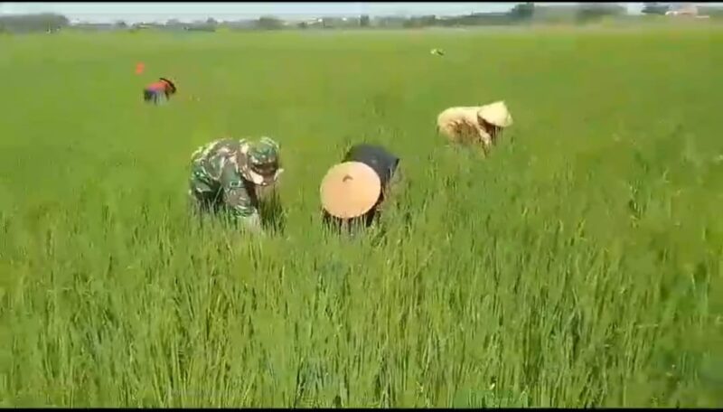Babinsa Turun Tangan Bantu Petani Basmi Gulma Padi