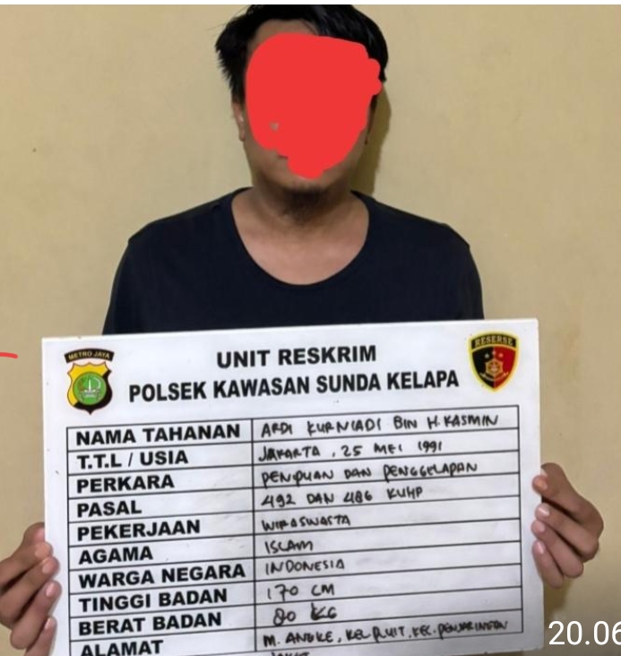 “Pelaku ditangkap pada Selasa (7/2) sekitar pukul 13.00 WIB di pinggir jalan di RT 10, RW 11 Muara Angke, Pluit, Jakarta Utara,” kata Kanit Reskrim Polsek Sunda Kelapa Iptu Indra Basuki, S.H., M.H., di Sunda Kelapa, Jumat 10/4/2026.