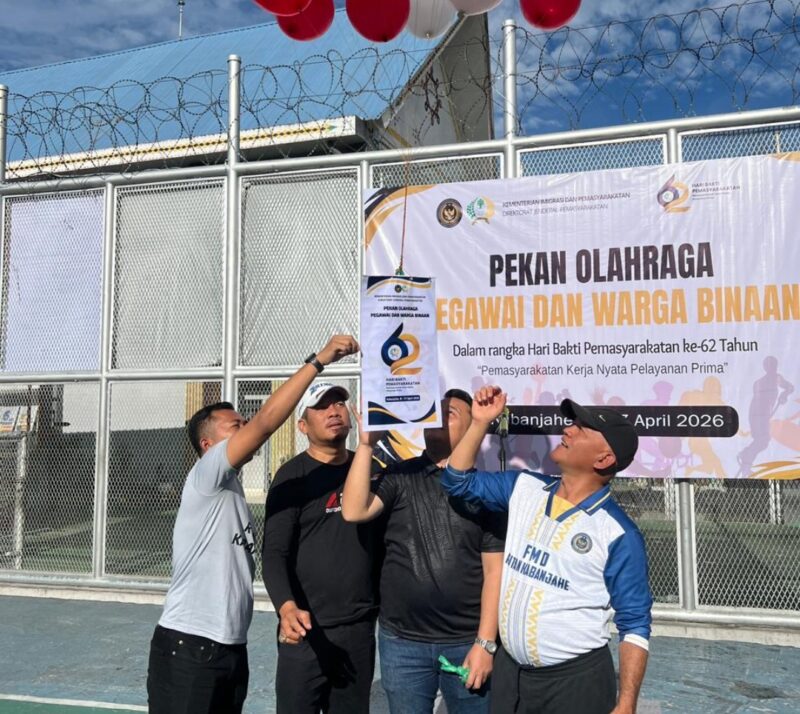 Tanah Karo – 10 April 2026, AgaraNews com // Tahanan Negara (Rutan) Kelas IIB Kabanjahe resmi membuka kegiatan Pekan Olahraga yang melibatkan pegawai dan Warga Binaan Pemasyarakatan (WBP) dalam rangka memeriahkan Hari Bakti Pemasyarakatan (HBP) ke-62. Acara pembukaan berlangsung meriah dan penuh semangat kebersamaan di lapangan Rutan Kabanjahe.