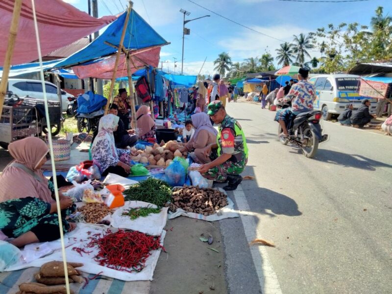 Babinsa Turun Kelapangan Cek Harga Sembako di Pajak Mingguan