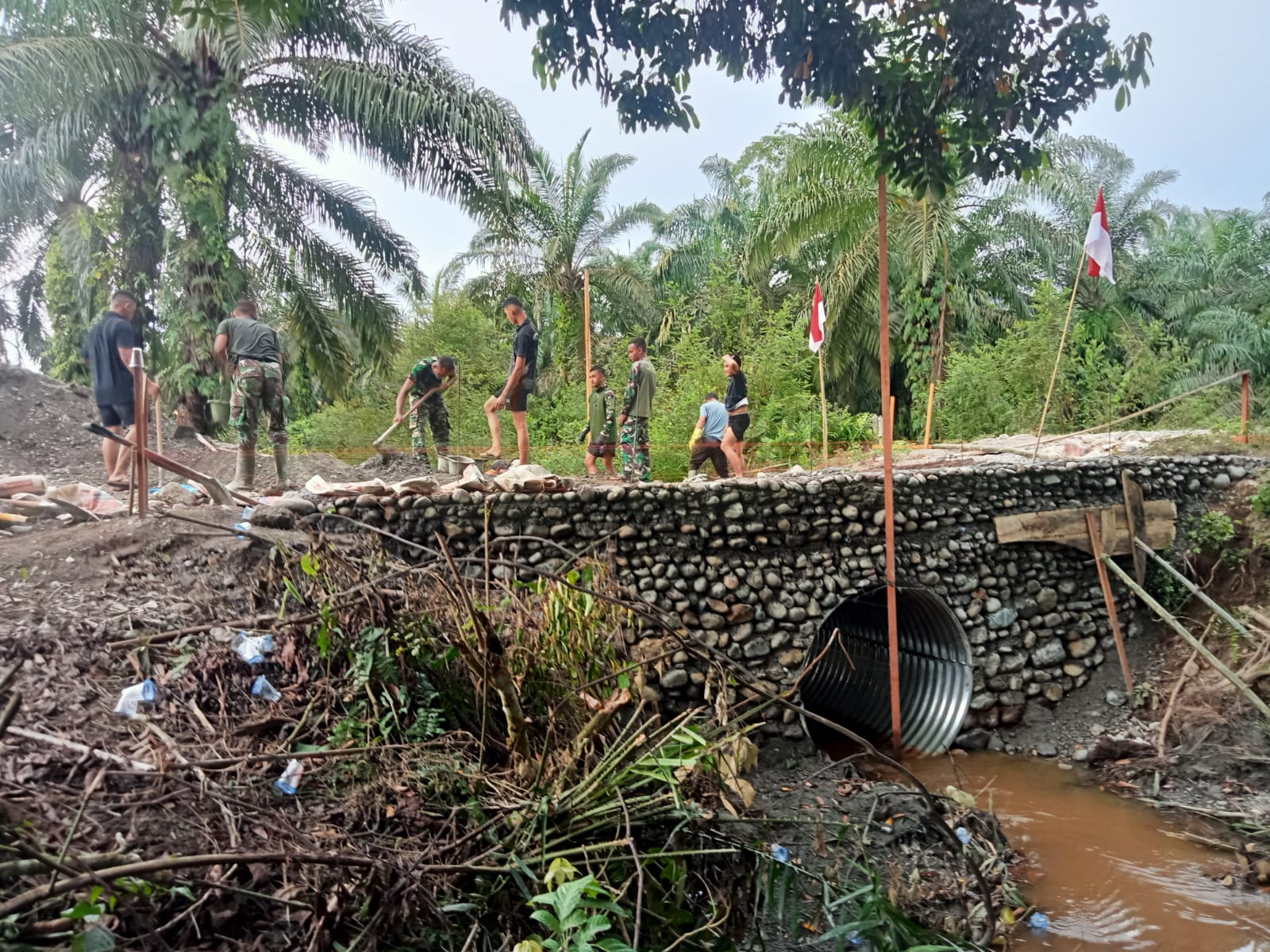 Danposramil Tripa Makmur, Peltu I Putu Bisma mengatakan” Pemasangan Batu di samping kanan kiri jembatan Aramco tersebut, merupakan bagian dari komitmen TNI AD melalui satuan teritorial dalam membantu pemerintah daerah guna mempercepat pembangunan sarana transportasi yang vital.