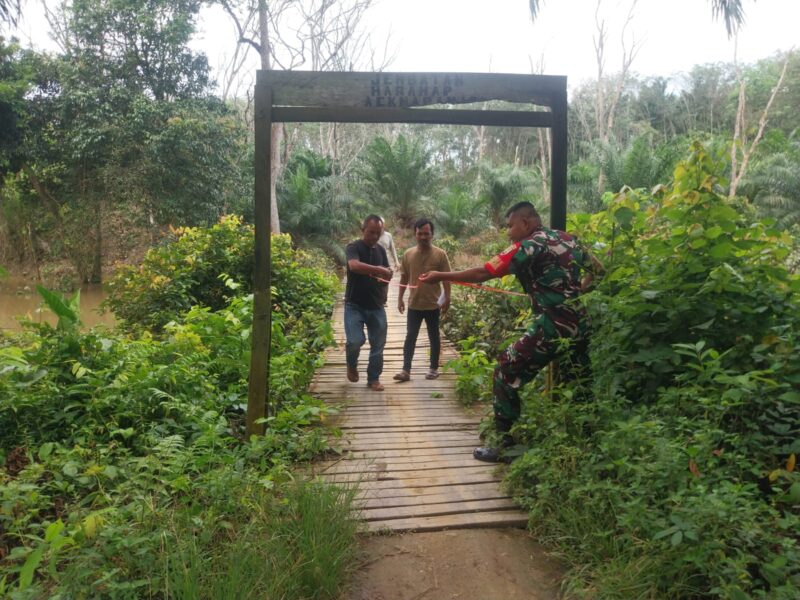 Labuhanbatu, AgaraNews.com //.Koramil 12/Langga Payung (LP) Kodim 0209/Labuhanbatu melalui Babinsa Serda Edy Harahap melaksanakan kegiatan pengukuran rencana pembangunan jembatan Bailey di Lingkungan Janji Matogu, Kelurahan Langga Payung, Kecamatan Sungai Kanan, Jumat (10/04/2026). Kegiatan ini menjadi langkah awal dalam mendukung percepatan pembangunan infrastruktur di wilayah tersebut.