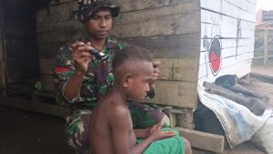 Kegiatan sederhana namun penuh makna ini tidak hanya bertujuan menjaga penampilan dan kerapihan anak-anak perbatasan, tetapi juga menjadi sarana membangun hubungan emosional yang hangat antara TNI dan masyarakat. Kehadiran prajurit di tengah anak-anak menciptakan suasana akrab, ceria, dan penuh kekeluargaan.