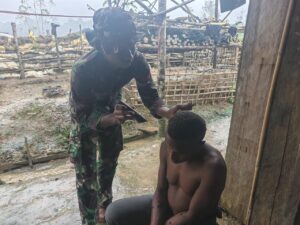 Denom, Pegunungan Bintang, AgaraNews .com // Pos Denom Satgas Yonif 751/Vira Jaya Sakti (VJS) melaksanakan kegiatan sosial dengan memberikan layanan cukur rambut gratis kepada anak-anak di wilayah perbatasan. Kegiatan ini menjadi salah satu bentuk kepedulian prajurit TNI dalam menjaga kerapihan sekaligus mempererat kedekatan dengan masyarakat, khususnya generasi muda. (Sabtu,11/4/2026).