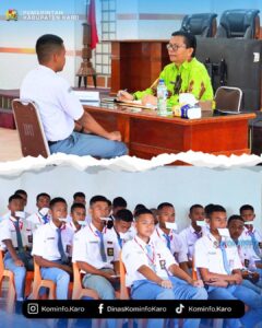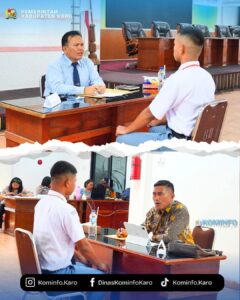 Rangkaian seleksi kemudian dilanjutkan dengan Seleksi Kepribadian dan Wawancara yang dilaksanakan pada Jumat (10/04/2026) di Aula Rakoetta Brahmana Kantor Bupati Karo. Proses wawancara dilakukan oleh Sekretaris Daerah Kabupaten Karo, Gelora Kurnia Putra Ginting, S.STP., M.M., Staf Ahli Bupati Karo Bidang Politik dan Pemerintahan, Frans Leonardo Surbakti, S.STP., Asisten Pemerintahan dan Kesejahteraan Rakyat Setda Kabupaten Karo, Dr. Drs. Eddi Surianta, M.Pd., Kepala Badan Kesbangpol Kabupaten Karo, Gelora Fajar Purba, S.H., M.H., serta Sekretaris Dinas Pendidikan Kabupaten Karo, Daut Sembiring, S.STP., MSP.