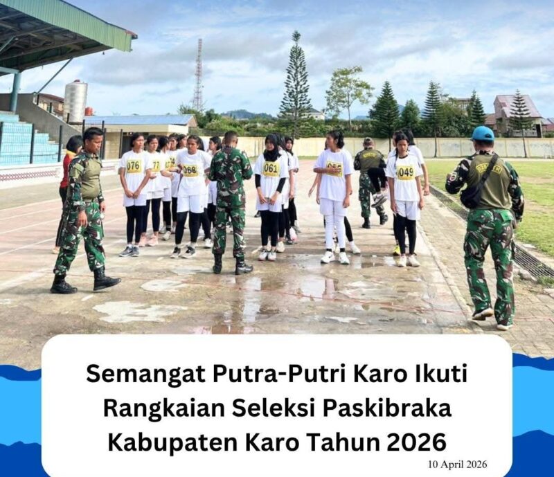 Tanah Karo, AgaraNews.com // Pemerintah Kabupaten Karo melaksanakan rangkaian Seleksi Calon Pasukan Pengibar Bendera Pusaka (Paskibraka) Kabupaten Karo Tahun 2026 yang dimulai dengan Seleksi Kesamaptaan pada Kamis (09/04/2026) di Stadion Bola Kaki Samura, Kabanjahe, serta dilanjutkan dengan Seleksi Kepribadian dan Wawancara pada Jumat (10/04/2026) di Aula Rakoetta Brahmana Kantor Bupati Karo. Kegiatan ini menjadi bagian penting dalam menjaring putra-putri terbaik Kabupaten Karo yang akan bertugas pada upacara peringatan Hari Kemerdekaan Republik Indonesia Tahun 2026.