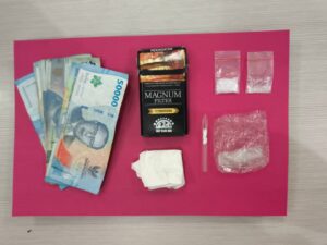 Selain itu, turut diamankan kotak rokok Magnum, pipet berbentuk skop, tisu, plastik berisi sejumlah plastik klip kosong, serta uang tunai sebesar Rp800.000 yang diduga berkaitan dengan aktivitas peredaran narkotika.