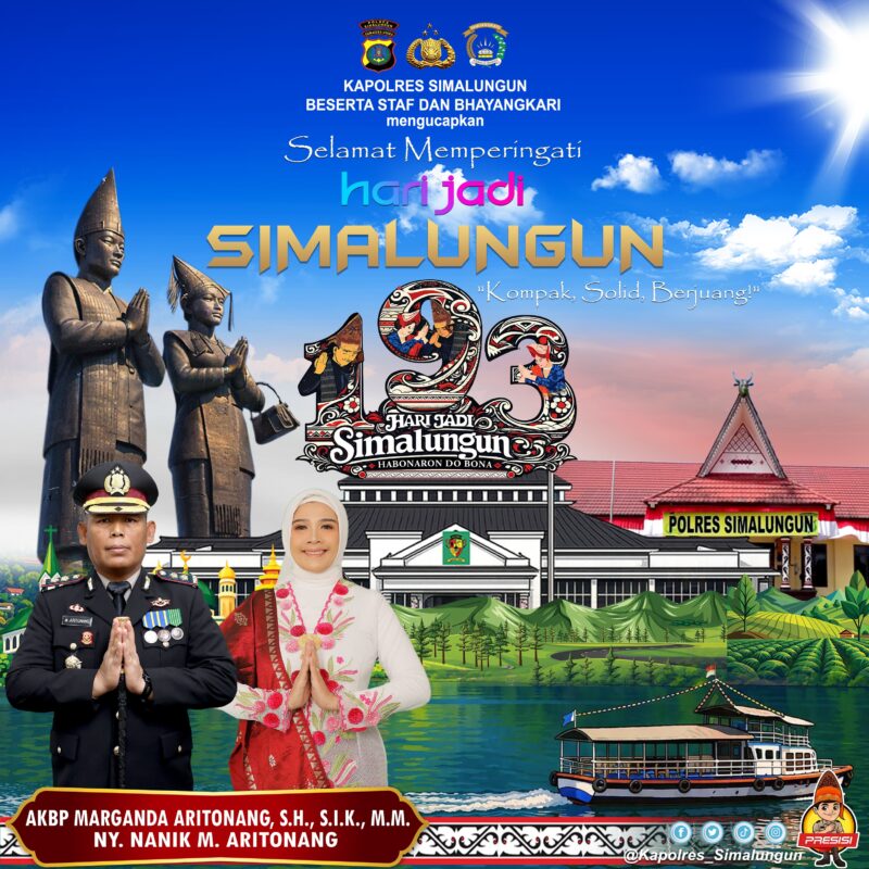 Kapolres Simalungun, AKBP Marganda Aritonang, S.H., S.I.K., M.M., menyampaikan ucapan selamat yang tulus dan penuh makna kepada seluruh masyarakat Kabupaten Simalungun. “Atas nama pribadi, keluarga, serta seluruh jajaran Polres Simalungun dan Bhayangkari, kami mengucapkan Selamat Memperingati Hari Jadi Simalungun yang ke-193 Tahun. Semoga Simalungun terus tumbuh dan berkembang menjadi daerah yang semakin maju, sejahtera, aman, dan damai bagi seluruh warganya,” ucap AKBP Marganda Aritonang dengan penuh kehangatan.
