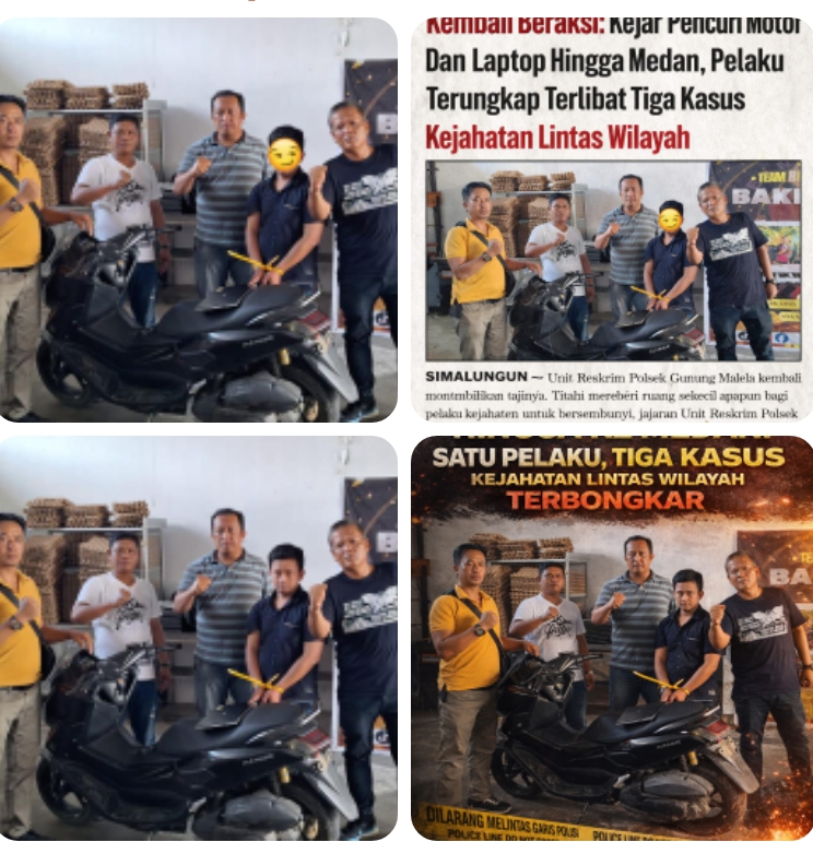 Simalungun, AgaraNews.com/ / Kecepatan, ketepatan, dan ketangguhan. Itulah tiga kata yang paling tepat menggambarkan kinerja Unit Reskrim Polsek Gunung Malela, Polres Simalungun, Polda Sumatera Utara kali ini. Dalam waktu kurang dari 1×24 jam sejak laporan pencurian diterima, tim Unit Reskrim Polsek Gunung Malela berhasil melacak, memburu, dan meringkus seorang residivis pelaku pencurian kendaraan bermotor yang telah melarikan diri sejauh Kota Medan. Lebih mengejutkan, satu pelaku ini ternyata menyimpan rekam jejak tiga kasus kejahatan serius di tiga wilayah hukum yang berbeda.