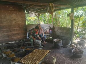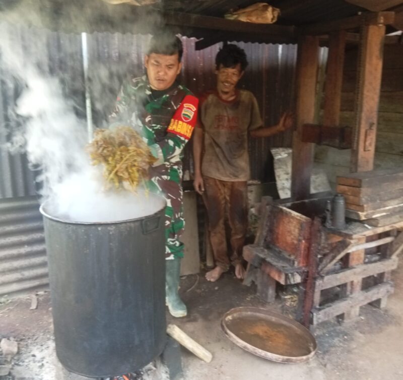 Pakpak Bharat, AgaraNews.com // Kehadiran Babinsa Koramil 06/Kerajaan, Kodim 0206/Dairi, Kopda Jismail Hutagalung di tengah aktivitas petani gambir menjadi bukti nyata peran TNI yang tidak hanya menjalankan tugas keamanan, tetapi juga membangun kedekatan dengan masyarakat. Kegiatan komunikasi sosial (komsos) tersebut berlangsung di pondok pengolahan gambir milik Oleh Berutu, di Desa Malum, Dusun Lae Merempat, Kecamatan STTU Jehe, Kabupaten Pakpak Bharat, Sabtu (11/4/2026).